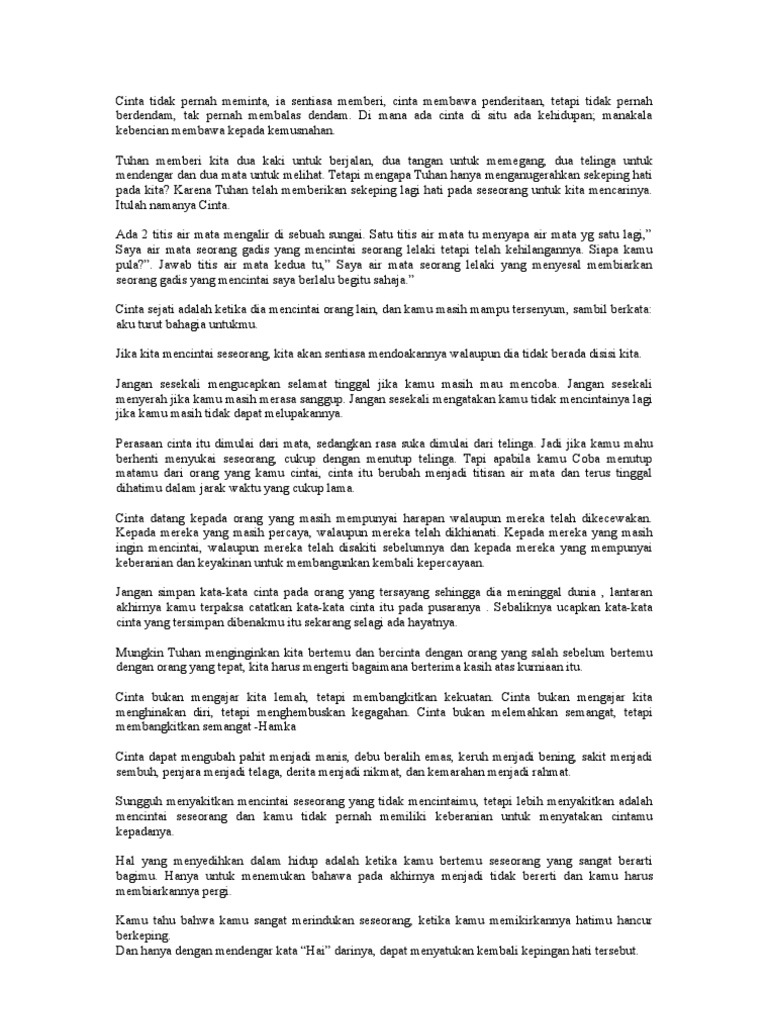 Selain menceritakan tentang kehidupan ninja, film naruto juga menyuguhkan beragam kisah cinta romantis. Mungkin kebanyakan dari kita banyak yang tidak mengetahui definisi dari cinta itu sendiri. Ini juga akan memberikan sebuah semangat baru, motivasi, nasehat, atau ajakan tertentu. 9 kata kata mutiara islam bahasa inggris menyentuh hati. Dalam hubungan percintaan, perasaan sedih dan bahagia adalah hal yang wajar.